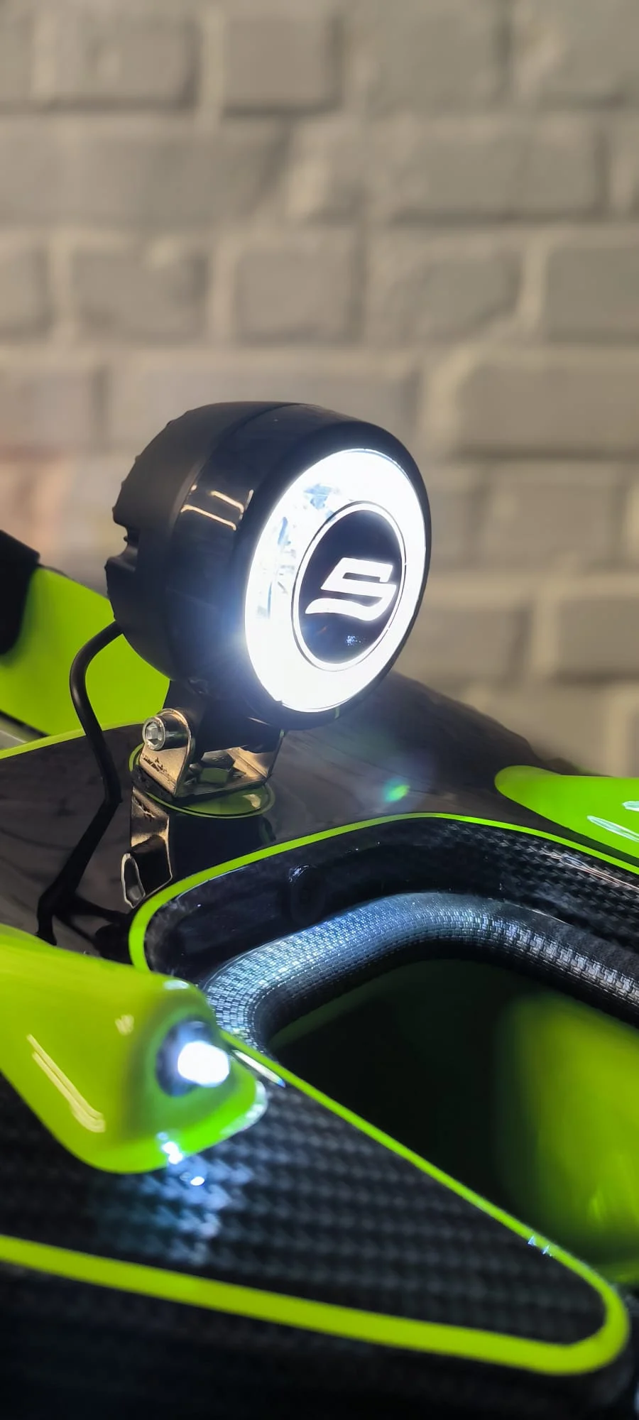 Op al onze voerboten zijn vooraan 2 witte en achteraan 2 rode ledlichtjes voorzien. Om in het donker nog beter te kunnen zien kan u deze grote LED spot laten monteren.