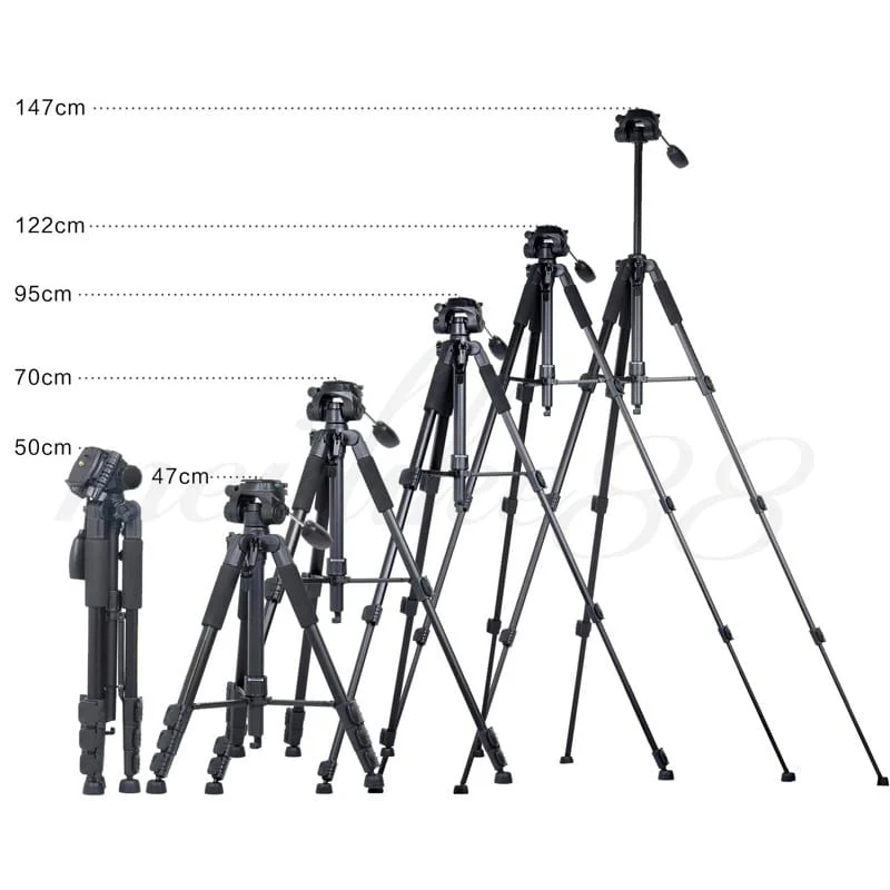 Het statief heeft een basishoogte van 47cm en kan uitschuiven tot een lengte van 140cm. Elke poot is voorzien van een rubberen antislip moddervoeten voor extra grip.